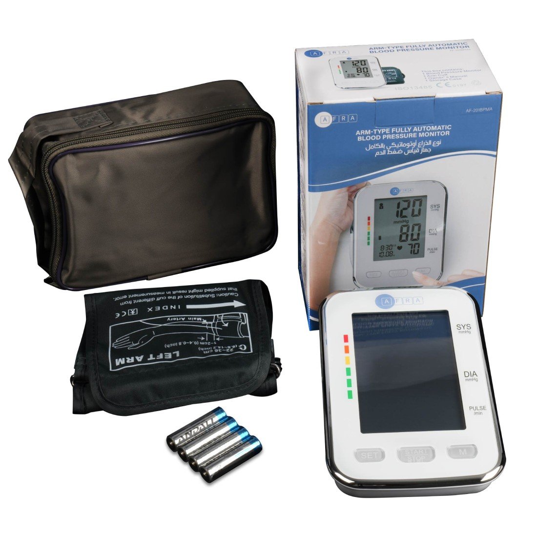 The AFRA Digital Blood Pressure Monitor AF-201BPMA is designed for precise and convenient home health monitoring. Featuring a comfortable arm-type cuff in large size, this white digital monitor provides accurate blood pressure readings with ease. Its user-friendly interface and clear digital display make it ideal for all users. With a sleek design and 2-year warranty, this device ensures reliability and peace of mind.
