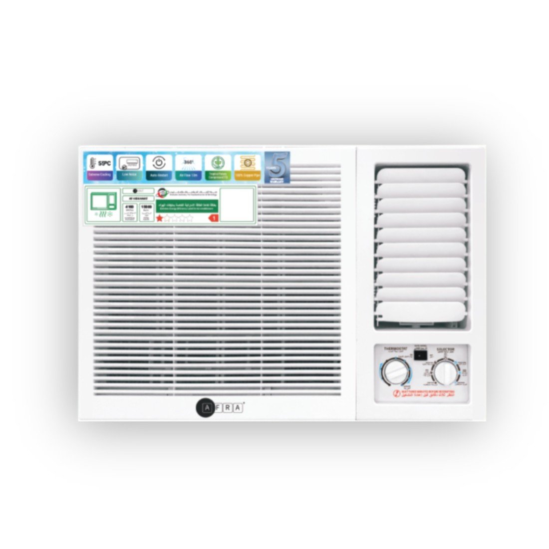AFRA Window Air Conditioner AF-1800WAWT is a powerful 1.5 Ton cooling-only unit designed for tough climates. Built with T3 rotary compressor technology and eco-friendly R410a refrigerant, it delivers fast and reliable cooling performance in high ambient conditions. The window-mounted design makes it easy to install and maintain, while the sleek white finish complements any room decor. Ideal for bedrooms, offices, and small to medium spaces. Backed by a robust 5-year compressor warranty, this AC is built for long-term reliability and efficiency.
