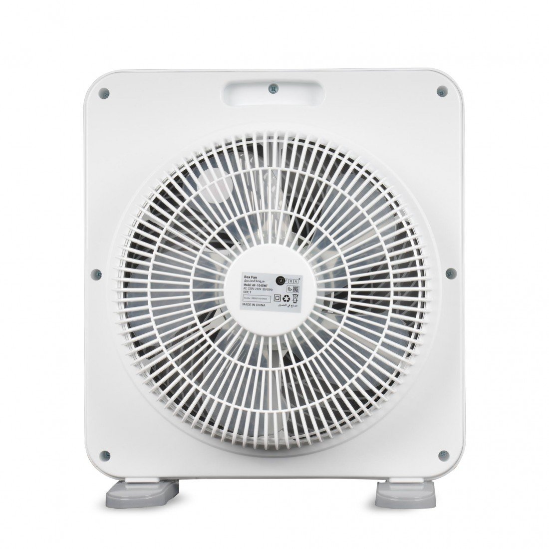 Experience effective and energy-efficient cooling with the AFRA Electric Box Fan – Model AF-1045WT. Featuring a compact and portable design, this 45W fan is ideal for bedrooms, offices, and living spaces. Equipped with 5 durable blades and 3-speed control settings, it delivers customizable airflow to suit your comfort.With its sleek white finish, this box fan fits seamlessly into any modern setting. It operates quietly, ensuring minimal disturbance during work or sleep. it meets strict safety and efficiency standards in the UAE. Enjoy reliable performance and peace of mind with a 2-year manufacturer’s warranty.