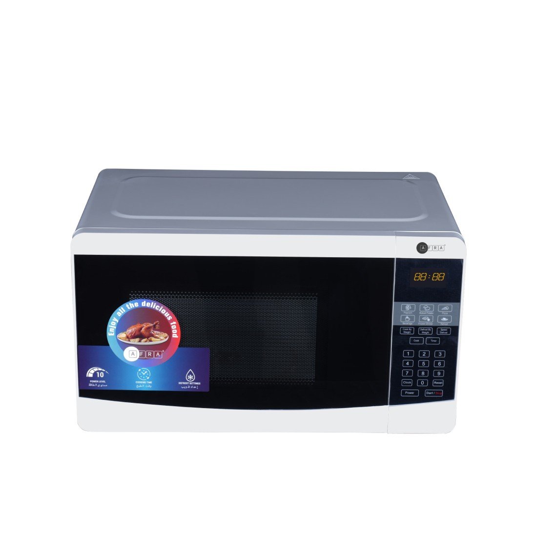 The AFRA Microwave Oven AF-2070MWWT combines efficiency with convenience in a compact design. Featuring a 20-liter capacity and powerful 700W output, this microwave offers multiple power levels to suit all your cooking needs. Equipped with digital controls, an oven grill, and a quick defrost feature, it delivers versatile cooking options. Certified by ESMA, ROHS, and CB standards, it ensures safety and quality. Backed by a 2-year warranty, this microwave is perfect for modern kitchens seeking reliable performance and ease of use.