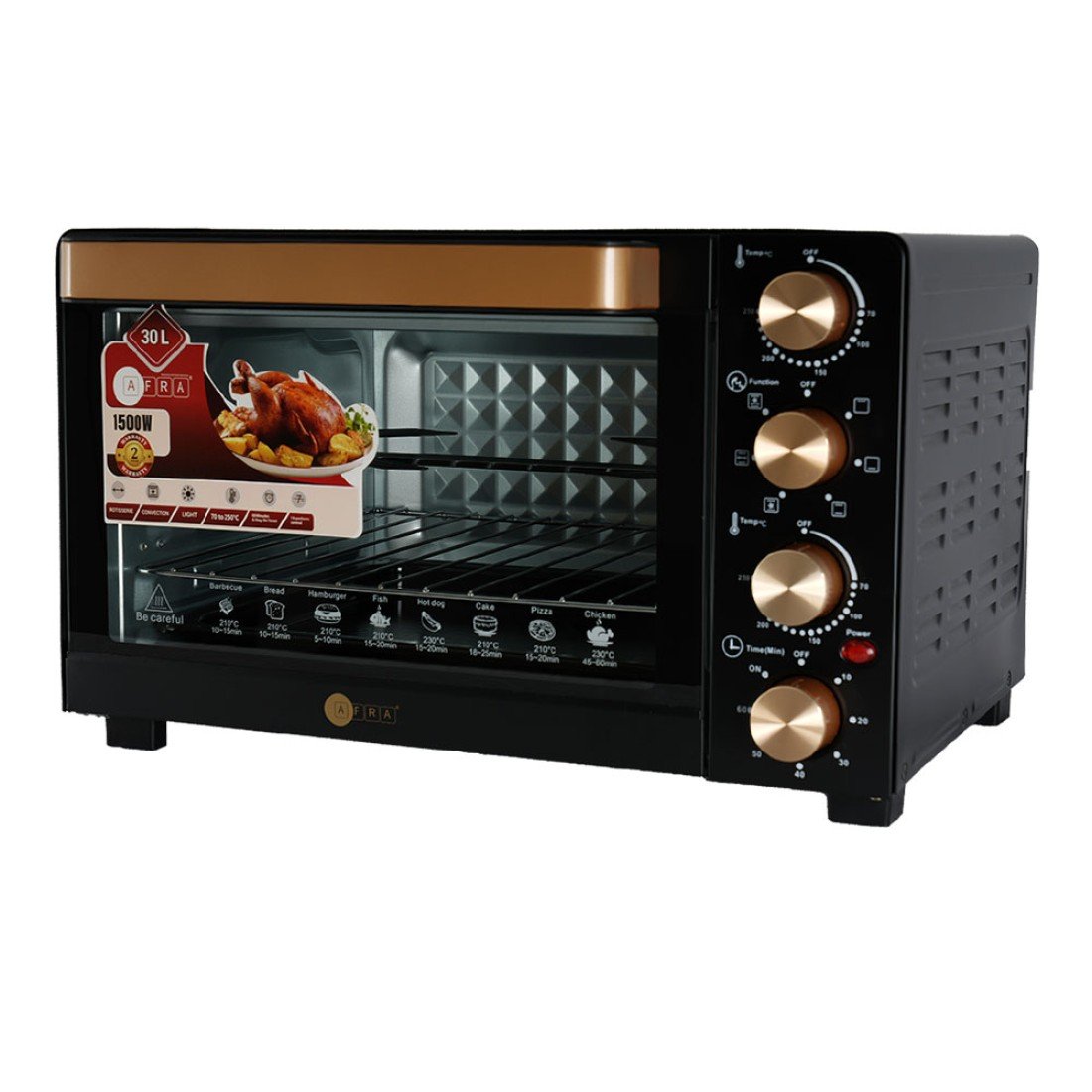 AFRA 30L oven toaster with rotisserie, convection, 7 functions, and 1500W power – AF-3015OTBK