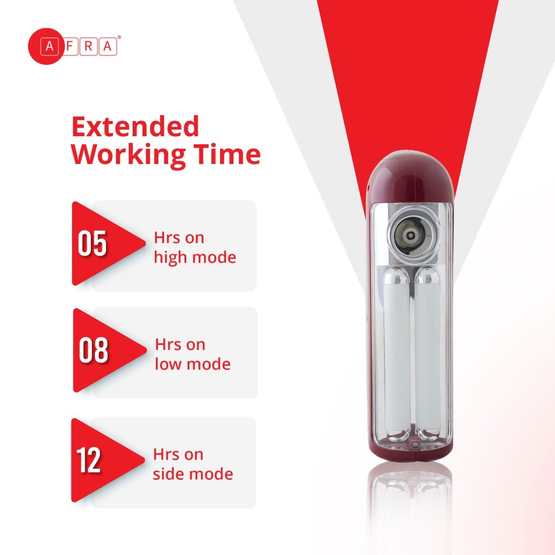 Light your way with the AFRA Rechargeable Lantern (Model: AF-2403RLNM)—a versatile and eco-friendly lighting solution ideal for homes, outdoor use, camping, and emergency situations. Powered by 10 watts, this lantern features 24 super bright LEDs to deliver powerful illumination in any setting.
