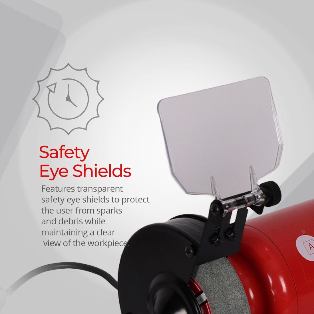 Equipped with dual 200x25mm grinding wheels, this grinder includes adjustable eye shields, a spark deflector, and an LED work light with an independent switch to ensure precision and safety. Its silent ball-bearing motor enhances durability and stability for both professional workshops and home garages. Comes with a 1-year AFRA warranty.