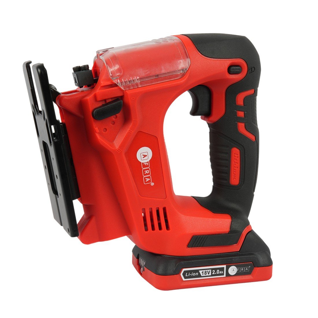AFRA Cordless Jigsaw – Model AFT-18JS-65CDRD is a high-performance, battery-operated cutting tool engineered for precision and mobility. Featuring an 18V motor with a variable speed of 0–2900 strokes per minute and an 18mm stroke length, this jigsaw delivers accurate, smooth cuts in wood, plastic, and light metal.