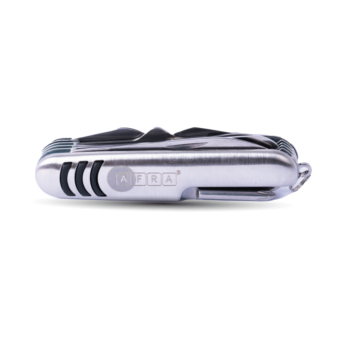AFRA Multifunction Knife – Model AF004MK offers premium functionality with 11 built-in tools, making it the ultimate everyday carry companion. Crafted with high-quality 3CR13 stainless steel and a robust 430 stainless steel silver cover, this knife ensures superior durability, corrosion resistance, and a sleek metallic finish.