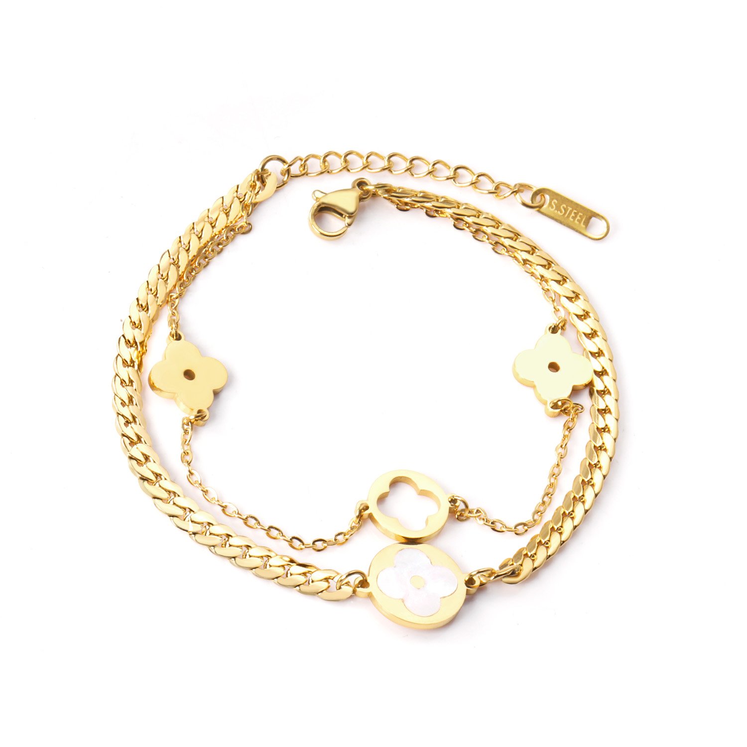 Its polished, anti-tarnish finish ensures lasting shine, while the lightweight and adjustable design makes it comfortable for everyday wear. Whether gifted to someone special or worn as a signature piece, the Clover bracelet adds charm and meaning to your jewelry collection.