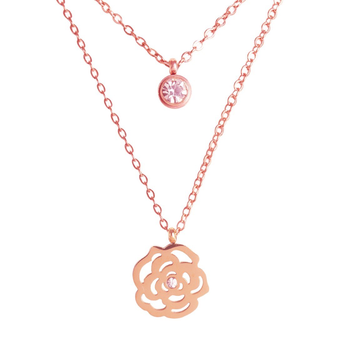 AFRA JEW Rosette Necklace | Rose Gold Stainless Steel | Floral Charm Pendant | AFJ13002N