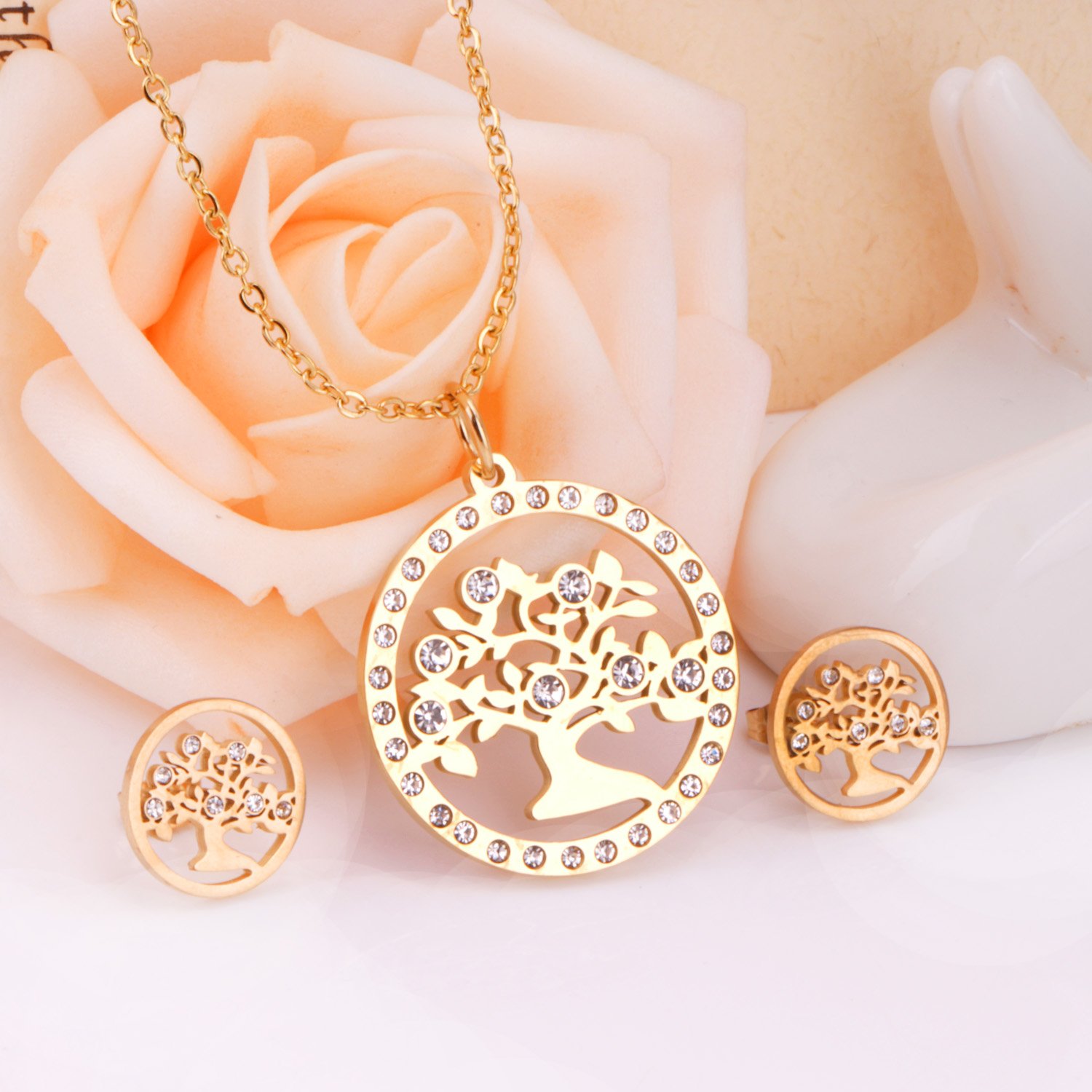 Finished with a high-shine anti-tarnish coating, it stays brilliant and lustrous over time. Made from hypoallergenic stainless steel, it’s gentle on sensitive skin and perfect for daily wear. The detailed tree charm pendant and matching earrings make this set a thoughtful gift or a meaningful addition to your own jewelry collection.