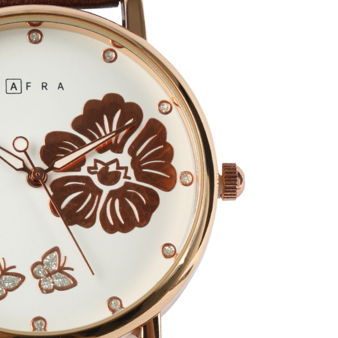 The AFRA Elanor Ladies Watch AF20201 blends timeless elegance with modern design. Featuring a striking rose gold metal alloy case, a crisp white dial, and a rich brown leather strap, this watch adds sophistication to any outfit. Powered by precise quartz movement and crafted for comfort, it offers reliable performance and style for daily wear. Perfect for women who appreciate classic aesthetics with durable construction.